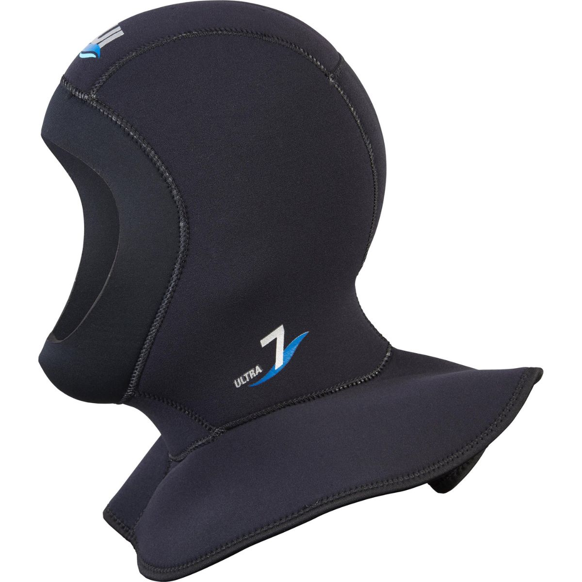 Hergestellt aus hochwertigem, besonders dehnbarem Neopren für höchsten Tragekomfort. Standard-Trockenanzug-Haube mit Selbstentlüftung (mit kurzem Hals).